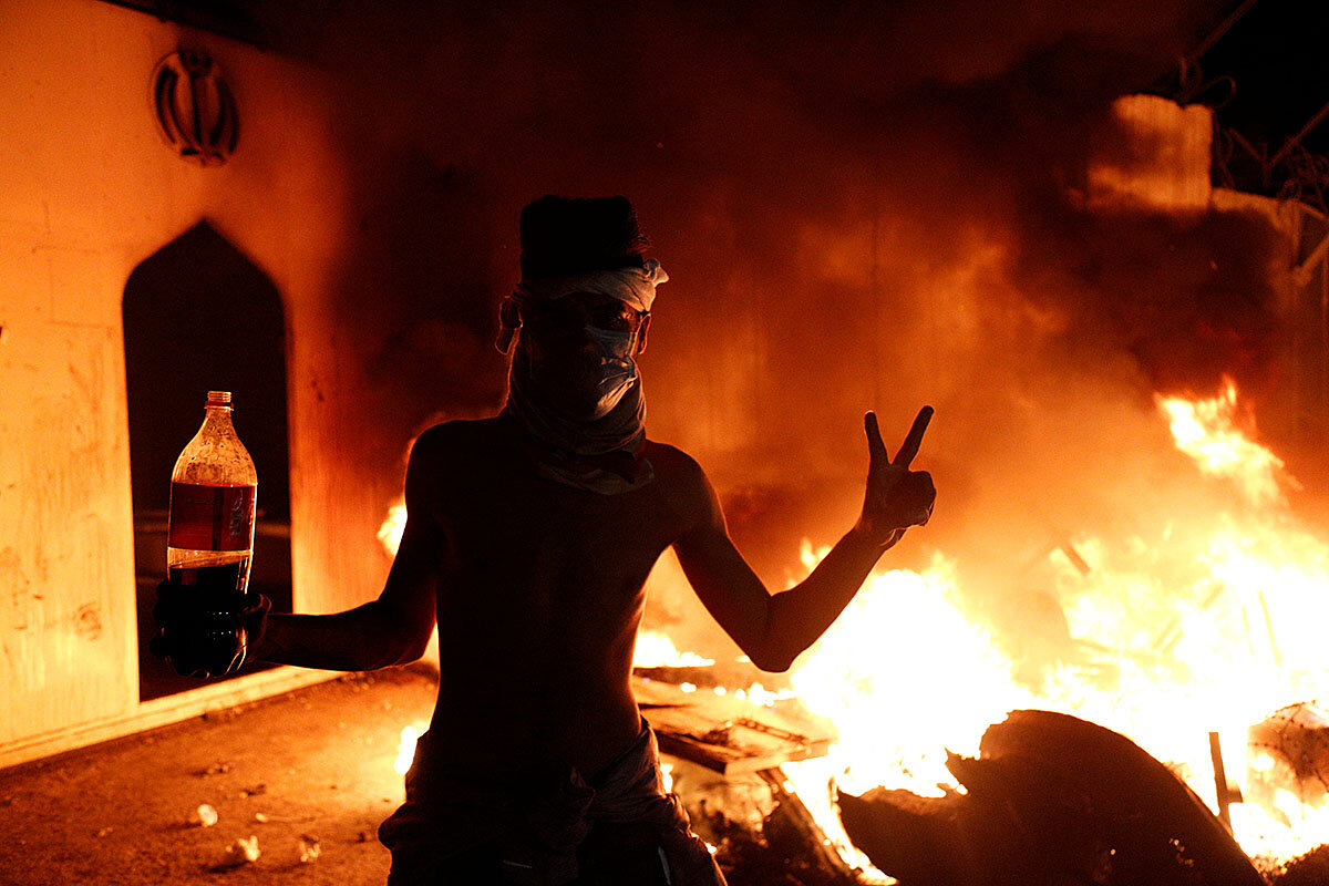 They were thrown by men who first stormed and torched the nearby Iranian consulate Nov. 27, chanting “Iran out of Iraq” – the first of three attacks on that building in a week.