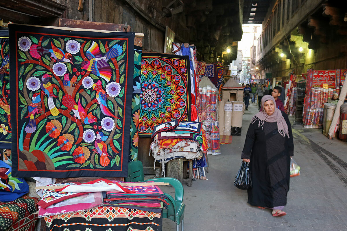 A walk along the roofed street of Souk Al Khayamiyya, literally the tent-makers market, between the buzzing motorbikes and puttering tuk-tuks, is a colorful journey through the cultures and civilizations that touched Egypt and the greater Islamic world.