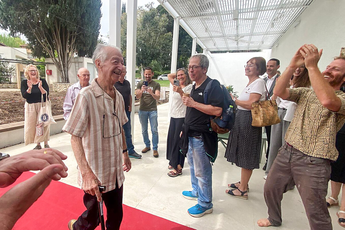 Last month, among the flowering trees of Kibbutz Mishmar Ha’Emek, a red carpet was rolled out in honor of Mr. Lev’s arrival for a sneak preview of the documentary being made about him. Walking with a cane and recovering from a recent illness, Mr. Lev could not resist doing a little jig as he stepped upon it to the cheers of friends and family.