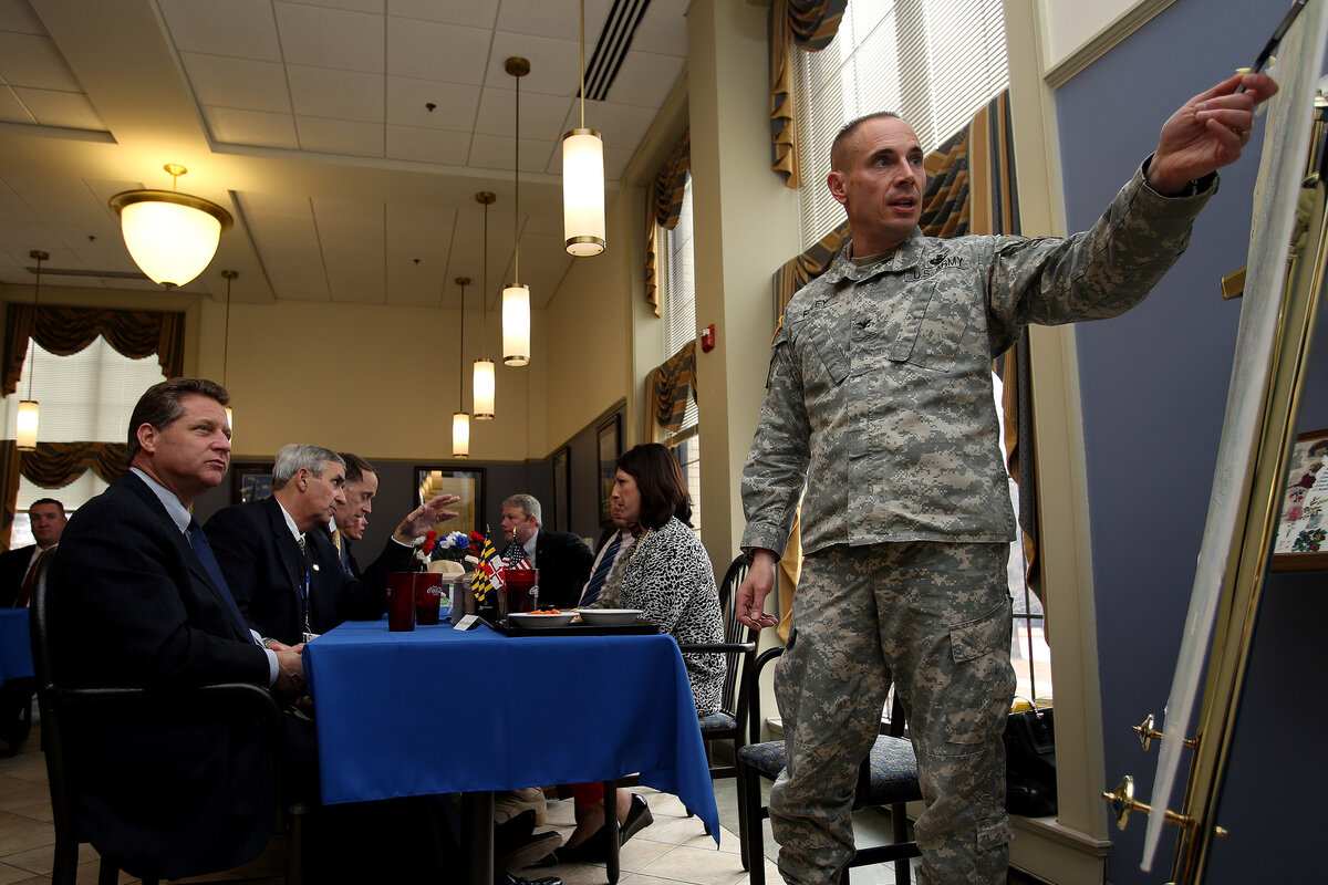 Dozens of businessmen filed off luxury tour buses, huddling around the Army colonel who commands the sprawling Fort George G. Meade , Md., base that’s home to the National Security Agency and the US military 's cyberwarfare command. He told them protecting the country from adversaries over computer networks is now just as crucial as on land, in air, sea, and space. It was hard to hear him over the sound of bulldozers and cranes clanking and screeching, building what will become a 750,000 square foot data center.